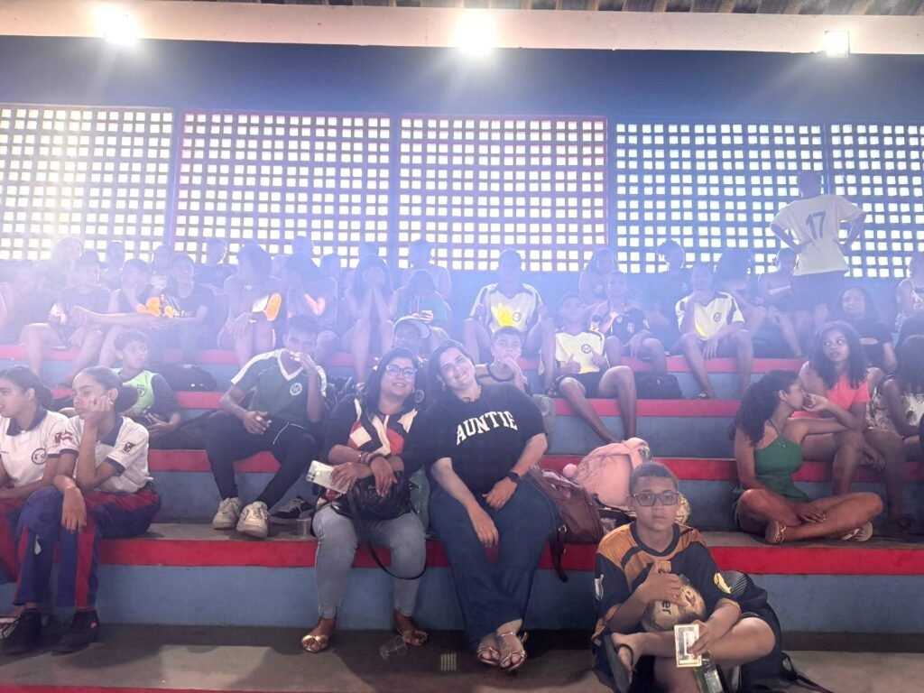 Na arquibancada, a festa foi tão grande quanto dentro de quadra. Professores e colegas de escola deram um show de torcida, com gritos de incentivo que ecoaram pelo ginásio. Entre eles, o carisma da professora Emanuelle, conhecida carinhosamente como Mana, chamou atenção. Sempre animada, ela não parou um minuto sequer, empurrando o time rumo à vitória.
