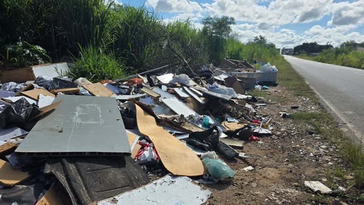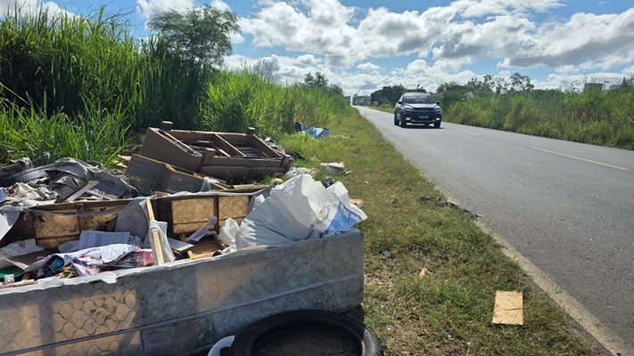 Além disso, o lixo espalhado às margens da estrada compromete a paisagem, coloca em risco motoristas e pedestres e contribui para a degradação ambiental.